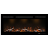 Современный электроочаг с декоративным наполнением из акриловых кристаллов и дров, палитра подсветки которых включает 6 оттенков основного пламени и режим тлеющих дров, 5 уровней настройки скорости пламени.