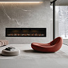 Современный электроочаг с декоративным наполнением из акриловых кристаллов и дров, палитра подсветки которых включает 6 оттенков основного пламени и режим тлеющих дров, 5 уровней настройки скорости пламени.