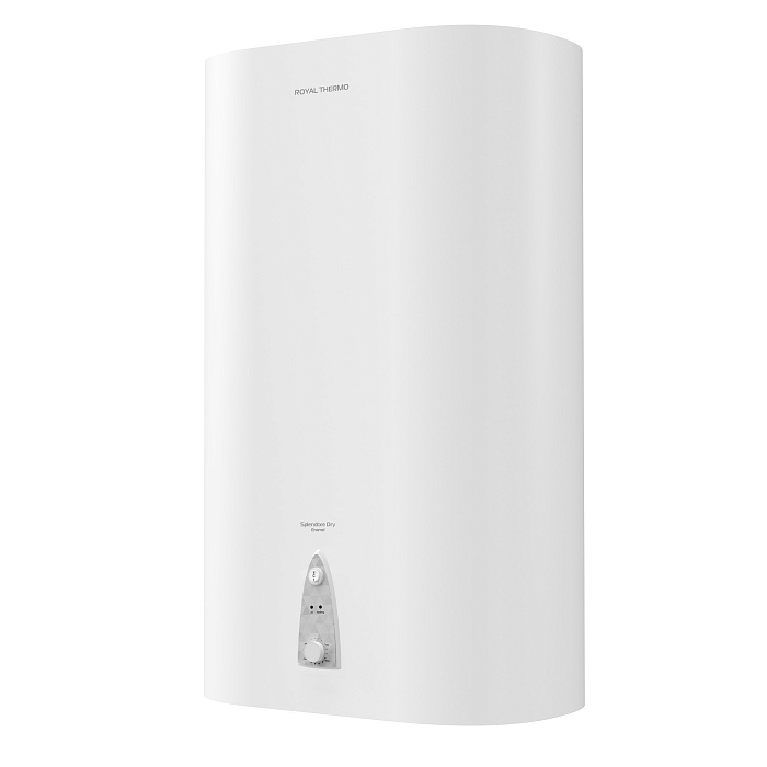 Накопительный электрический водонагреватель Royal Thermo Splendore Dry Enamel с эмалированным покрытием внутреннего бака и возможностью универсального монтажа в плоском дизайне.