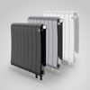 Радиаторы INFINITY выпускаются в двух высотах – 570 и 370 мм. Количество секций составляет от 4 до 14, межосевое расстояние — 500 и 300 мм при глубине 90 мм. Вся линейка традиционно выпускается в трех фирменных цветах Royal Thermo: Bianco Traffico (белый), Silver Satin (серый) и Noir Sable (чёрный), с боковым и нижним подключением.